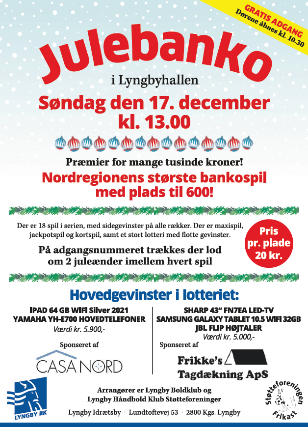 Kom og vær med til det årligt tilbagevendende store julebanko - læs mere nedenfor: