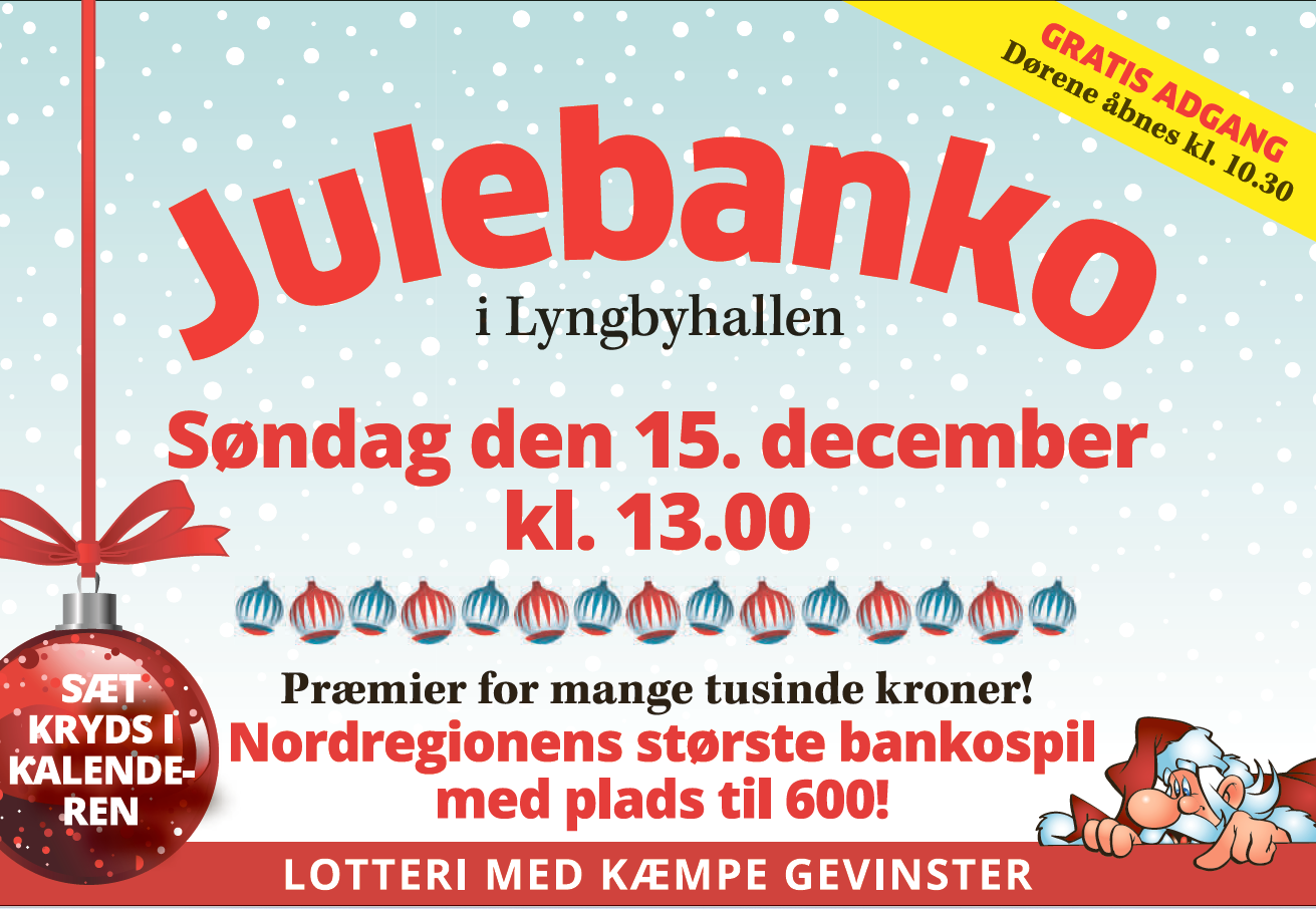 Kom og vær med til det årligt tilbagevendende store julebanko - læs mere nedenfor: